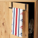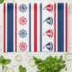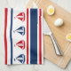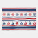 Nautical design with sailing boat and compass decoration on red, blue and white striped background