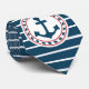 Nautical design with anchor decoration in round shape on blue and white striped background