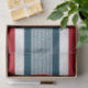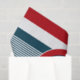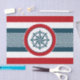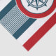 Nautical design with compass decoration in round shape on blue, red and white striped background