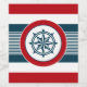 Nautical design with compass decoration in round shape on blue, red and white striped background