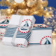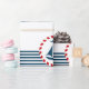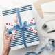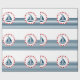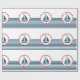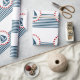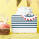Nautical design with sailing boat decoration in round shape on blue and white striped background