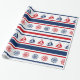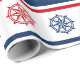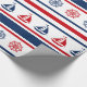 Nautical design with sailing boat and compass decoration on red, blue and white striped background
