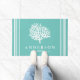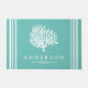 Your coastal cottage needs this doormat! Greet your guests with this airy and beachy white sea coral silhouette doormat.. The background is a sea glass green color with personalized family name text in white. This doormat is elegant, chic, and would make a great impression on your house guests as they are welcomed to your home!