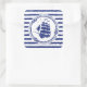 Blue nautical emblem with sailing ship on a striped background | © and ® Bigstock® - All Rights Reserved.