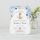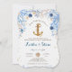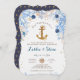 Ahoy! They're tying the knot! A gold foiled anchor surrounded by a frame of ocean underwater coral in blue, gold, sand, navy and teal with starfish and seashells, perfect invitation for the nautical couple.
