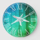 Nautical Faux Wood Ocean Hues & White Starfish Large Clock