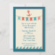 A nautical themed invitation with blue and coral bunting flags with anchor and rope accent, blue frame and coral trim on cream background with subtle stripe pattern. The bottom has a blue wave graphic. Just personalise the text with your party details. Suitable for any occasion, age or gender. Some graphics by Freepix.com