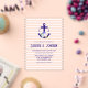 Nautical anchor and monogram framed by a lightened version of patriotic florals: white rose, blush pink peony and light blue. Preppy pink stripes for a summer, beach, or destination wedding event.