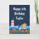 This cute and fun birthday card can be personalised with a name or title, such as daughter, granddaughter, niece, friend etc. It features a nautical sailor girl monkey on a wooden deck with a seagull and a crab. In the background there is a pink and white lighthouse, a cute bird on a sailboat, ocean waves and a navy blue starry night sky. The text combines bold and serif fonts for a stylish and modern look.