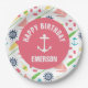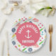 These personalised birthday party plates will be the perfect finishing touch to your nautical themed birthday party. Featuring a nautical inspired silhouette pattern and a silhouette of an anchor in the middle of each plate. Customise the text to suite your party details. Shop the entire coordinating collection for all your safari animal party needs.
