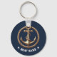 Nautical Gold Anchor Navy Blue Boat Name Keychain.