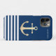 Nautical, Gold Anchor Navy Blue Striped Case-Mate iPhone Case