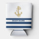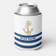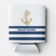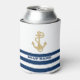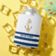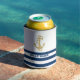 Nautical,Gold Anchor Navy Blue White Stripes Can Cooler