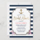 Nautical Gold Anchor Navy Stripes Bridal Shower Invitation