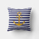 Nautical Gold Anchor on Blue & White Striped Cushion