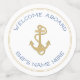 Fun nautical themed paper confetti with gold anchor design. Confetti comes in three sizes and the largest has text templates. Use to say "Welcome aboard" with ship's name at the bottom. Text can also be deleted, or changed for any event.