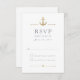 Customise this stylish modern Elegant Clean and Light Nautical Wedding Response RSVP Card. White design, set as a template for an easy customisation. Please note that the gold on this design, on gold anchor, is not an actual gold foil, it's a colour print. The text colour is customisable, the gold elements can be moved around or deleted.