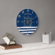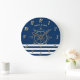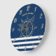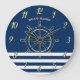 Nautical,Gold Boat Wheel, Navy Blue Stripes Large Clock