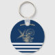 Nautical,Gold Seashells Navy Blue Stripes Key Ring