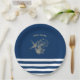 Nautical,Gold Seashells Navy Blue Stripes Paper Plate