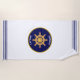 Nautical Golden Ship Wheel on White & Navy Blue Beach Towel