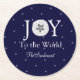 Nautical Christmas navy blue white Sand dollar joy to the world Round Paper Coaster