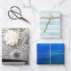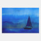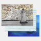Nautical landscape with lighthouse and vintage map. Blue stripes watercolor background, marine landscape with boat