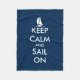 Nautical keep calm and sail on fleece blanket. Create your own funny keep calm and carry on parody for sailing / boating. Vintage keepcalm typography template with sailboat / ship. Custom background colour ie navy blue. Cute keepcalmandcarryon spoof examples: Keep calm and boat on. Keep calm and sail on. Keep calm and travel on. Available in small medium and large. Maritime theme accessory.