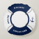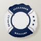 Blue and white lifering pillow with personalizable text on both sides. Beautiful decor for every nautical home.