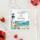 Beautiful birthday party napkin with a nautical black and white lighthouse, starfish and shells. Perfect for a birthday party. The words can be changed to suit your own details or requirements