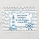 Personalised Trendy Nautical Lighthouse First Birthday Invitation for Boys with a Cute Ocean Water Background, Boating Wheel and Starfish.