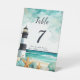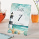 Beautiful wedding table number with a nautical black and white lighthouse, starfish and shells. Perfect for a wedding. The words can be changed to suit your own details or requirements