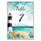Beautiful wedding table number with a nautical black and white lighthouse, starfish and shells. Perfect for a wedding. The words can be changed to suit your own details or requirements
