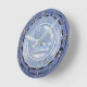 This is a very handsome, blue and silver coloured german manhole cover. It says" Standt Dortmund, Hansaplatz", a location in Germany. It features a 3 mast ship in the centre. For anyone whom enjoys nautical themed collectables or decor. It also features silver clock hands and numbers. Very sharp.