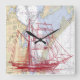 nautical chart of Galveston Bay Texas with large superimposed red sailboat on face of clock.