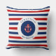 Nautical Marine Navy Blue Red White Stripes Cushion