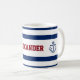 Nautical Marine Navy Blue White Stripes Coffee Mug