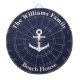 A white boat anchor is in the centre of this midnight blue dartboard. Also, there's two lines of white display text that you can edit (Shown: The Williams Family Beach House).