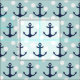 Cool and trendy nautical pattern of navy blue anchors and white polka dots on mint blue background.