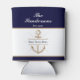 Nautical Modern Navy Blue Anchor Boat Name Can Cooler