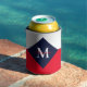 Nautical Modern Navy Blue Red Monogram Can Cooler