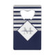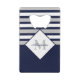 Nautical Modern Navy Blue, White Striped Grey Monogram Reusable Bottle Opener | Featuring an easy-to-personalise template, this design is both elegant and unique. This collection is perfect for personalising any home or occasion.