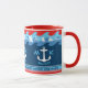 Nautical Monogram Anchor Waves Boat Red White Blue Mug