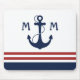 Navy blue anchor monogram with red, white, and blue nautical stripes.