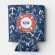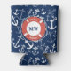 Nautical Monogram Navy Blue Anchor Pattern Can Cooler