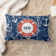 Nautical Monogram Navy Blue Anchor Pattern Lumbar Cushion