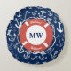 Nautical Monogram Navy Blue Anchor Pattern Round Cushion