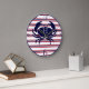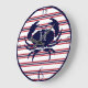 Nautical monogrammed red navy blue white striped crab clock