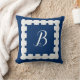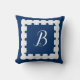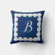 Your monogram on a navy blue nautical throw pillow with scallop shell seashell border. Click personalise to change to your initial or initials. Coastal decor for the vacation condo or your sailboat.