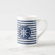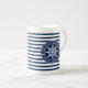 Navy blue customisable anchor label on white mug. Perfect decor for every nautical kitchen and dining room. For all sailors and for everyone who loves nautical, New England, Hamptons and Nantucket interior style.